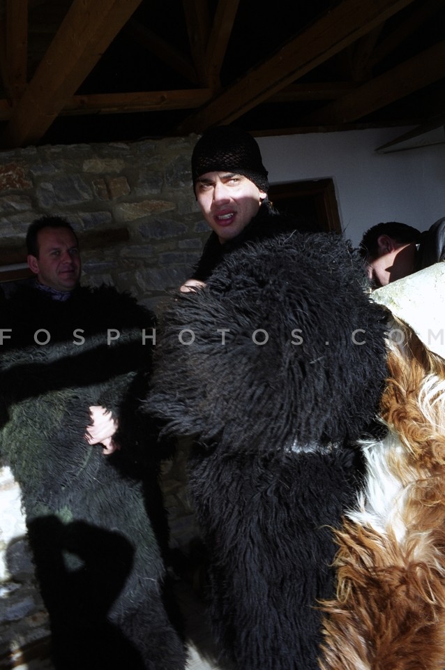 Man wearing sheepskins and bells partici…