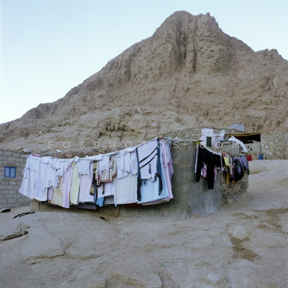 Clothes hanging outside a beduin home in…