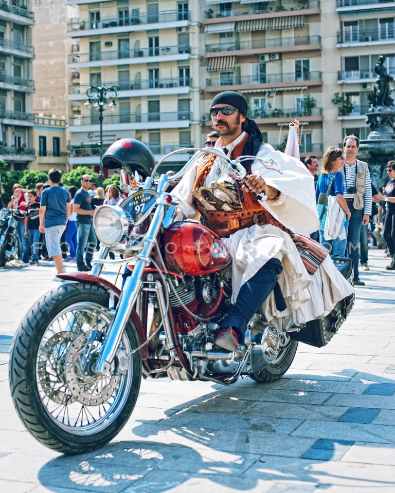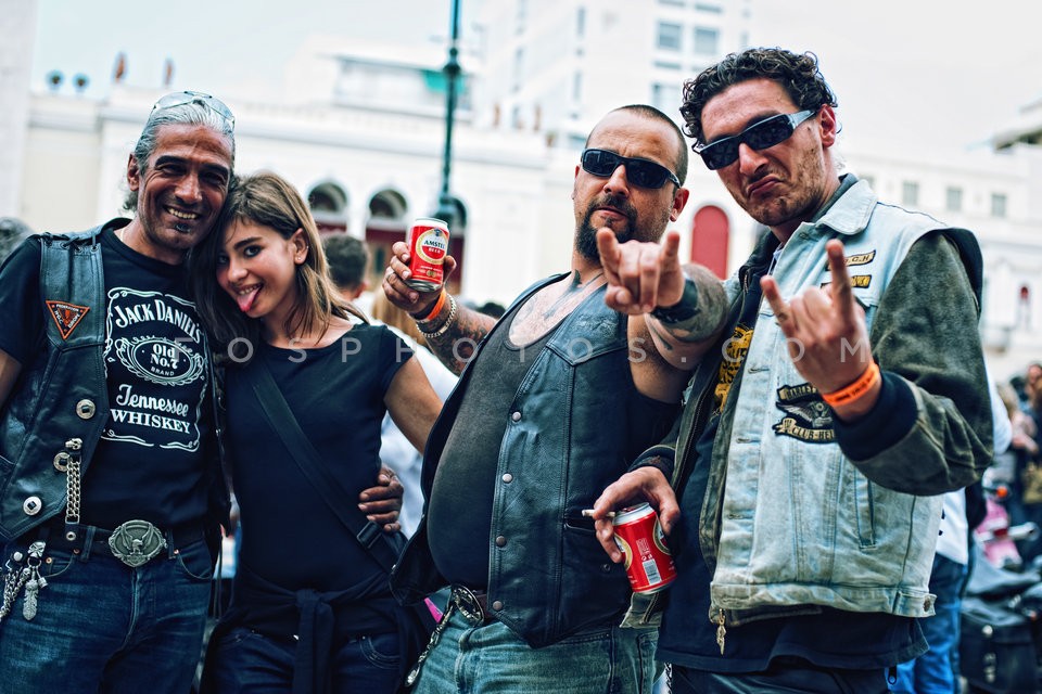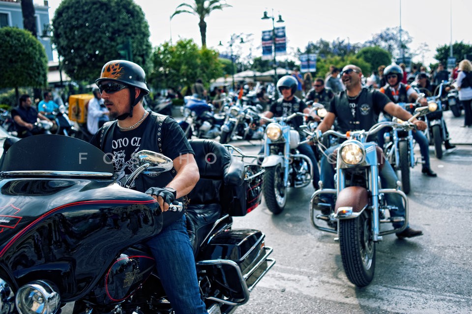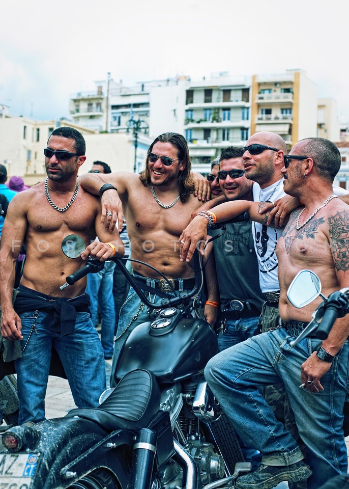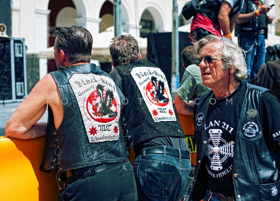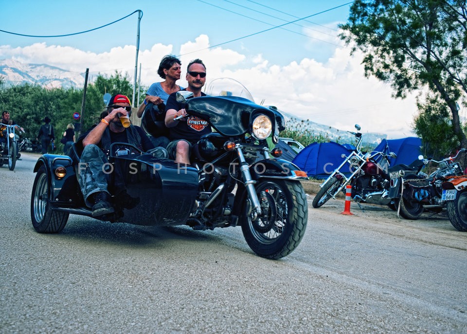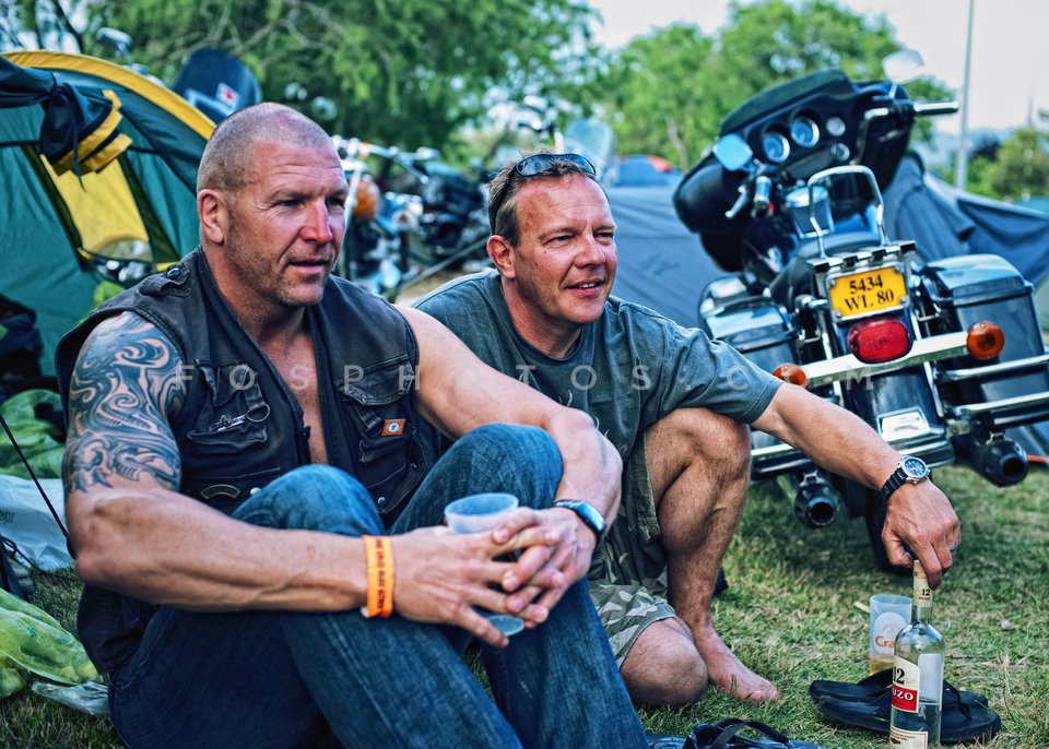 Bikers drinking ouzo, at motorcyclists c…