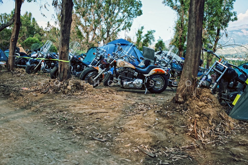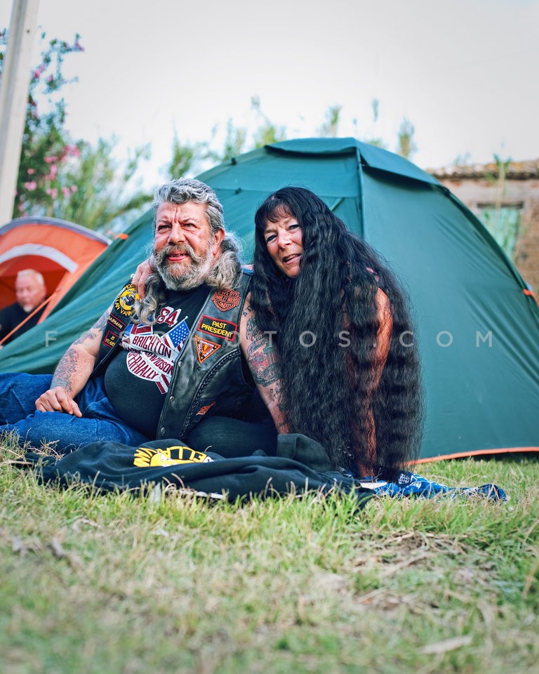 Motorcyclists camp, participating in int…