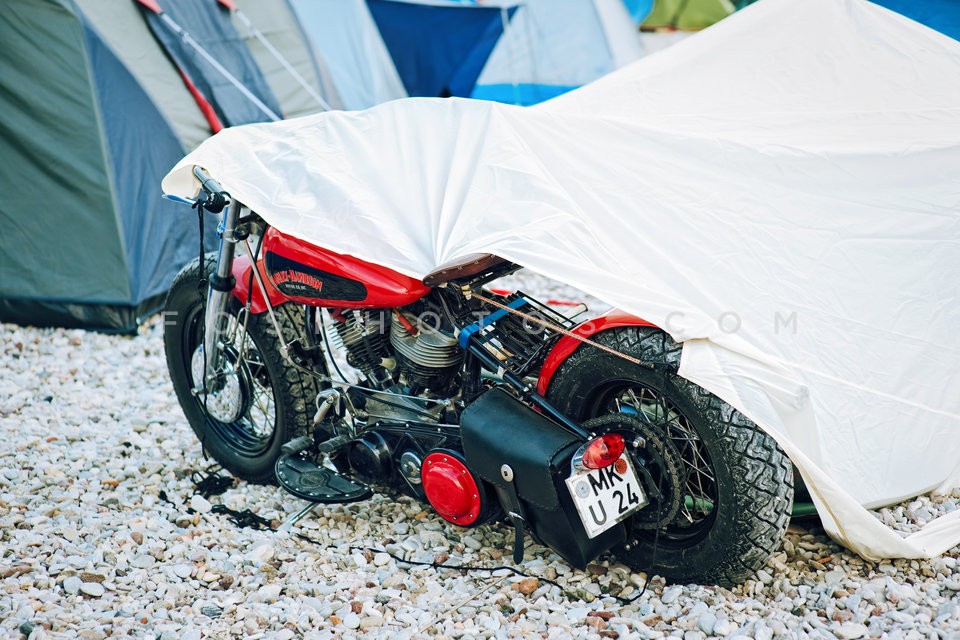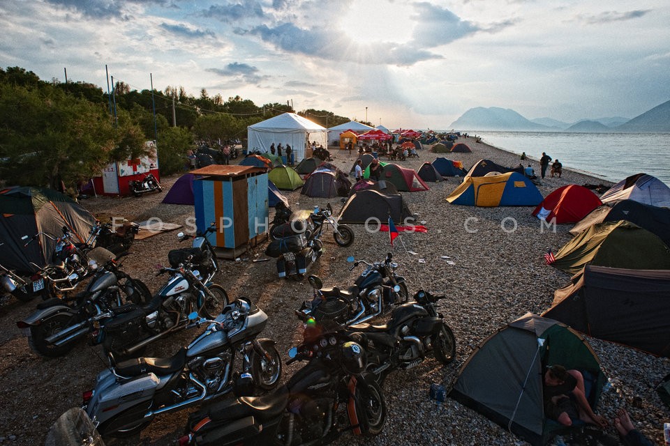 Motorcyclists camp, on a beach, particip…