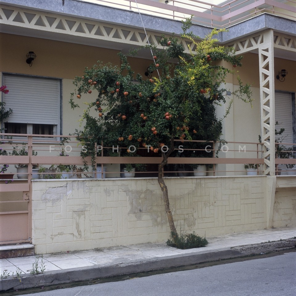 Pomegranate tree outside one storey hous…
