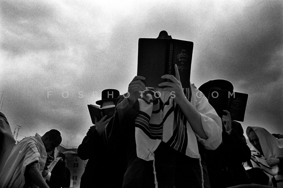 Jewish pilgrims praying at the Wailing W…
