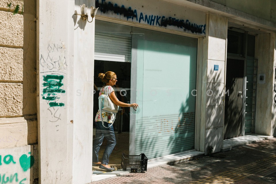 Woman comes out from store, 3rd Septembe…