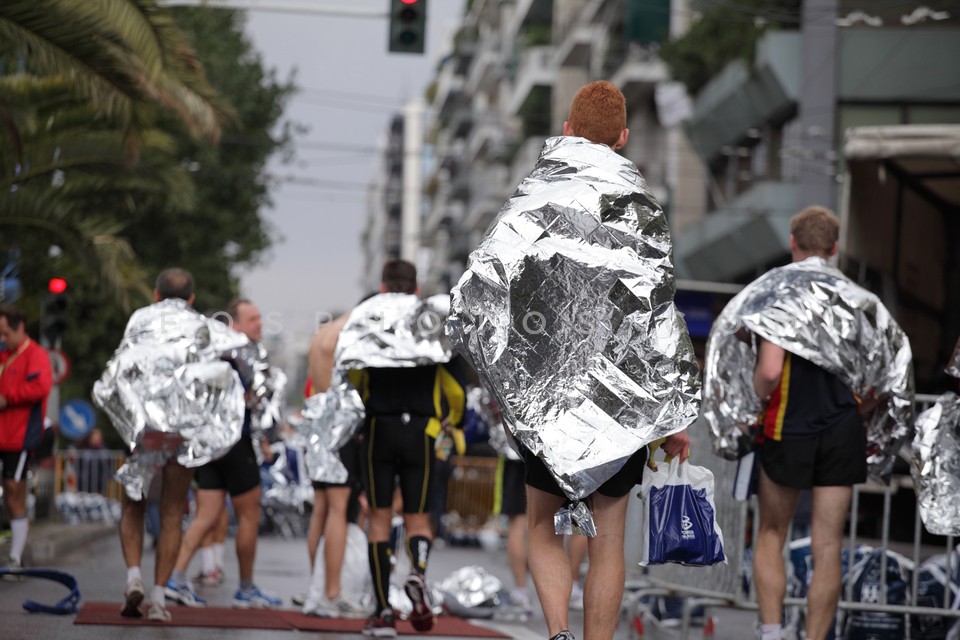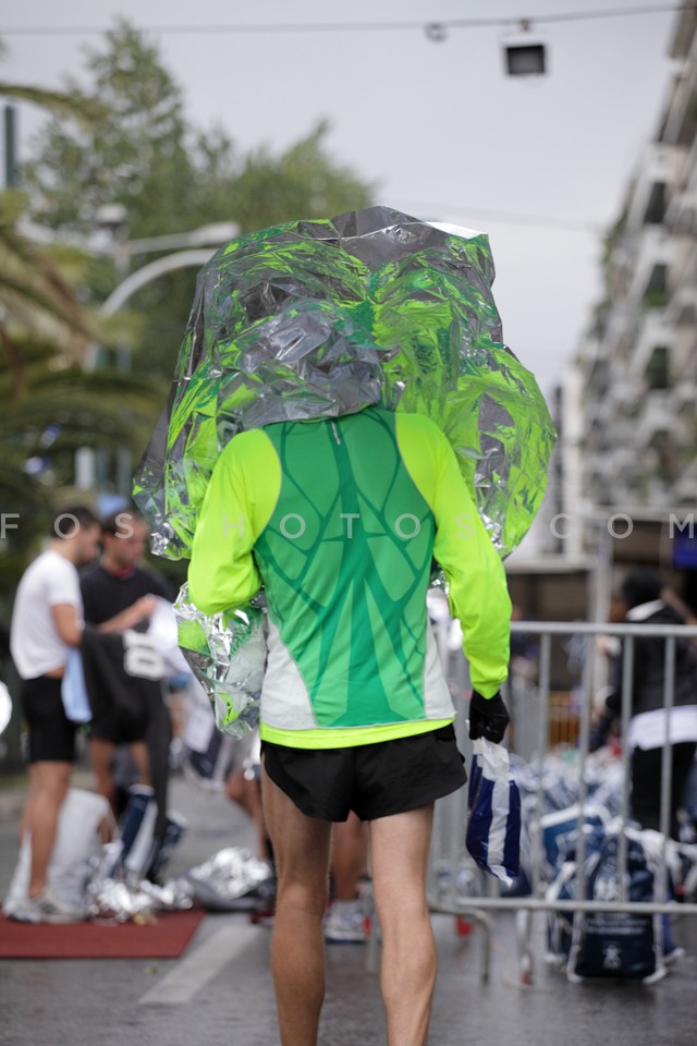 Runners wrapped in thermal blankets at t…
