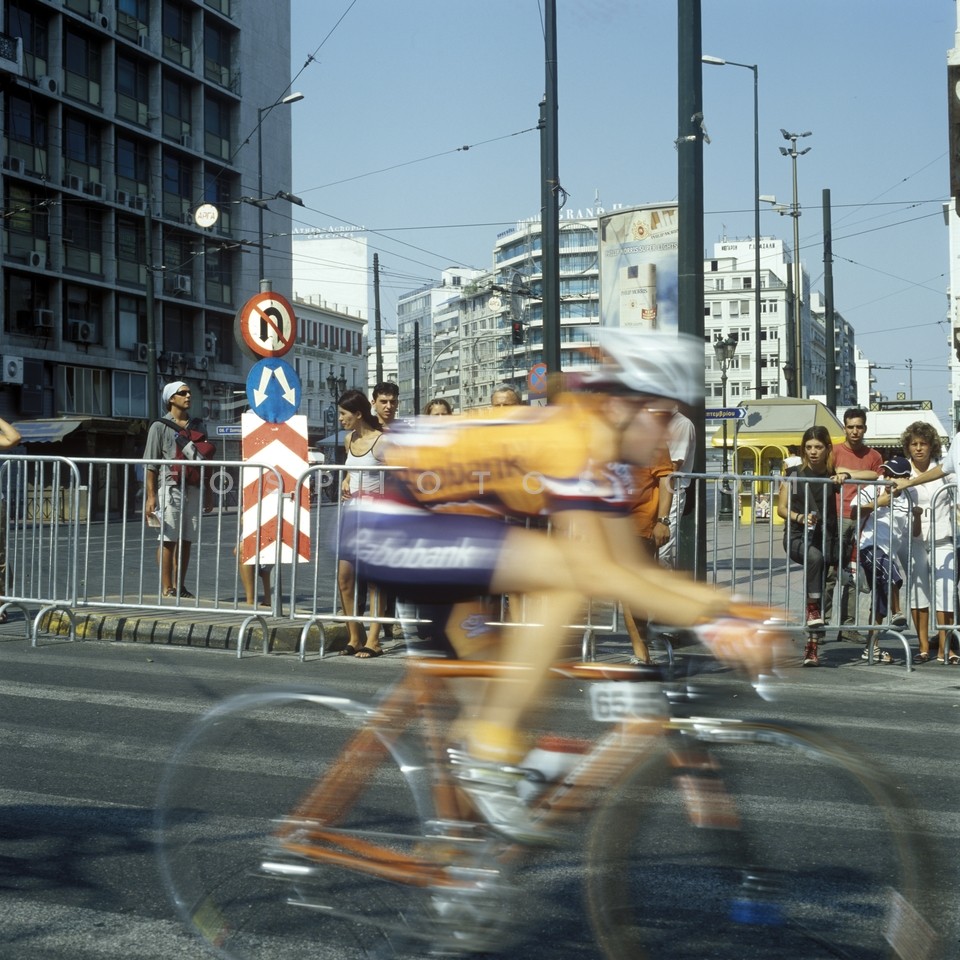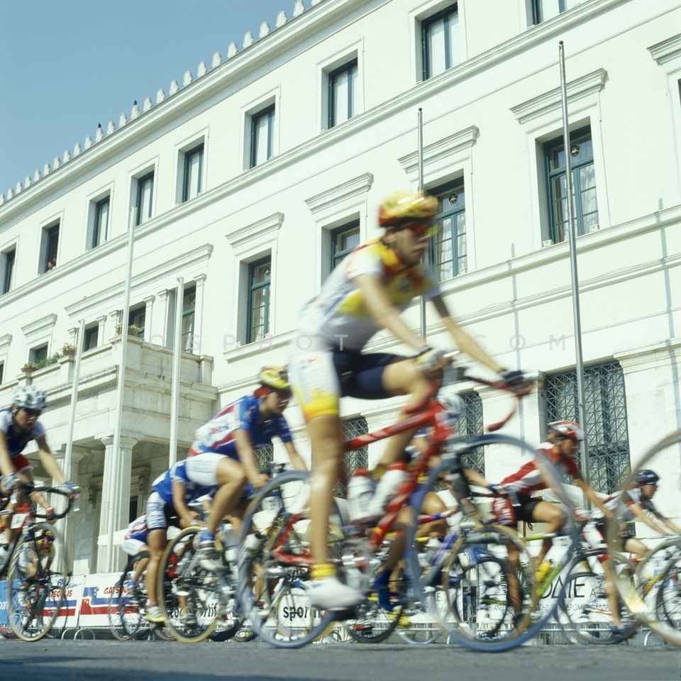 Cyclists passing in front of Athens City…