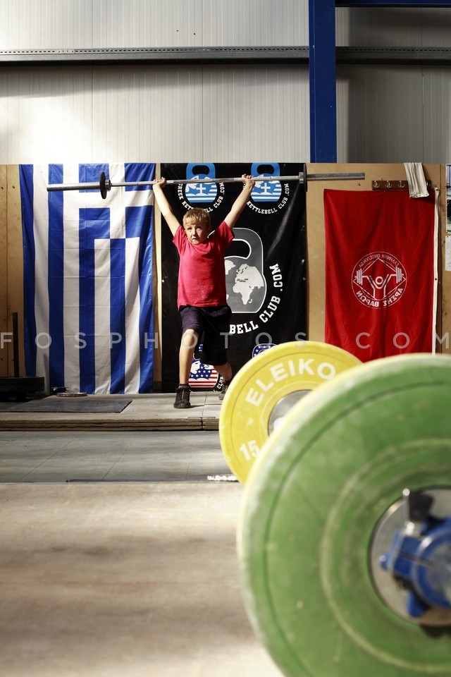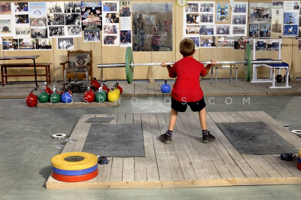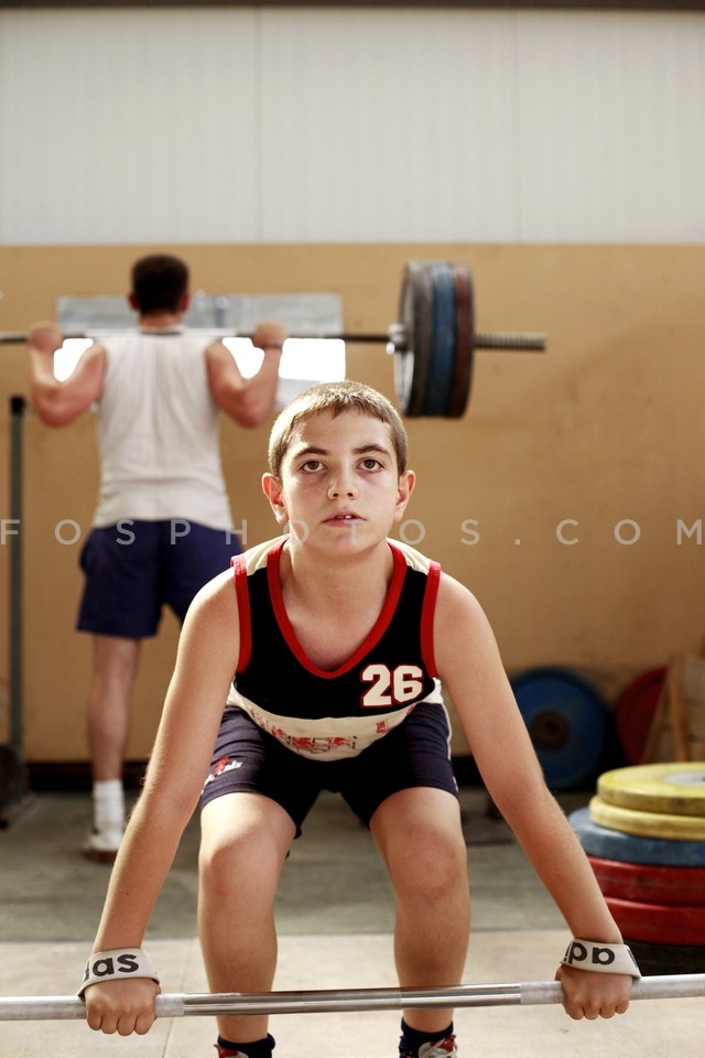 Boy training in liftweighting at the Mun…