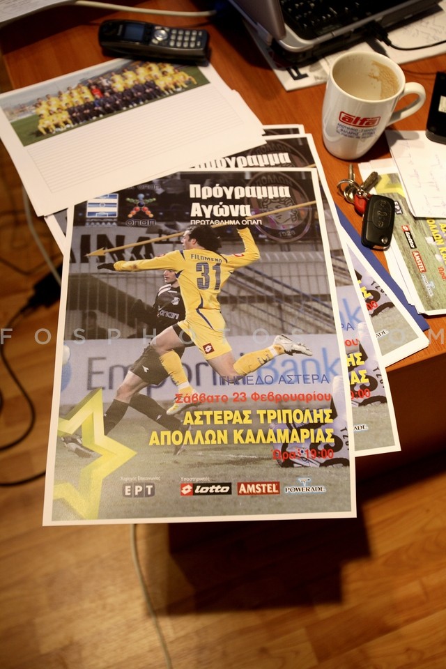 Posters on an office at the football sta…
