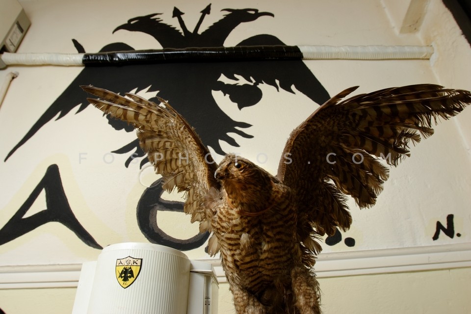 Taxidermied eagle at an AEK FC fan club