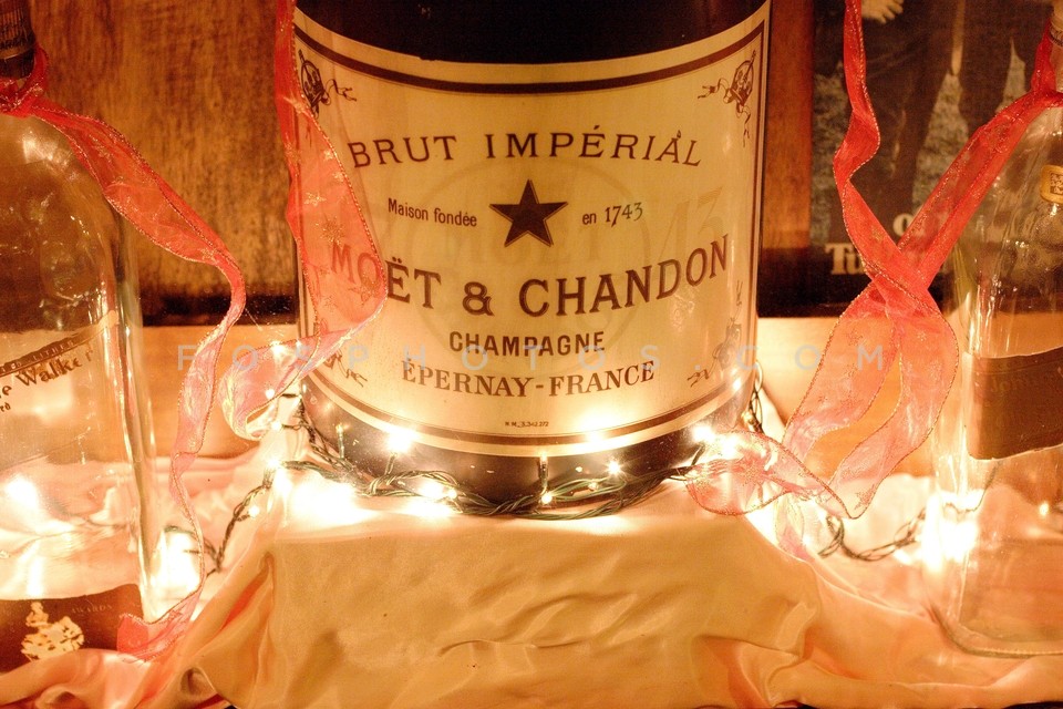 Champagne bottle and decorations