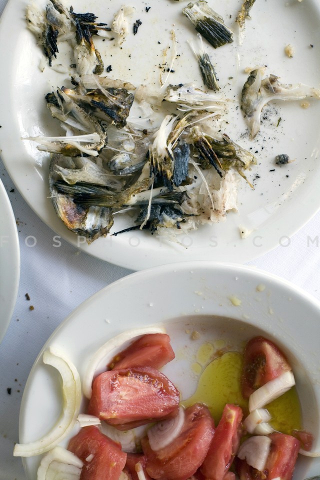 Fish leftovers and tomato salad, Limeni,…