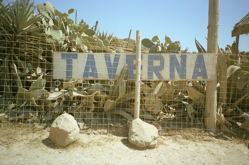 Dusty tavern sign in Elafonisi beach, Cr…