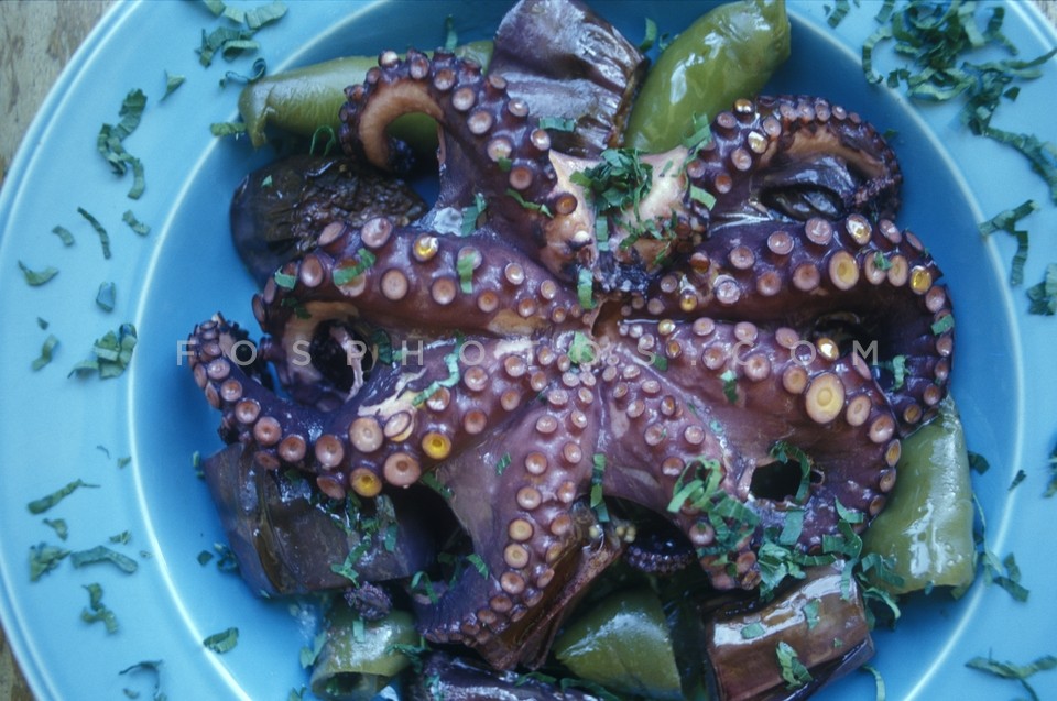 Octopus dish, Paros Island, Greece, June 2007