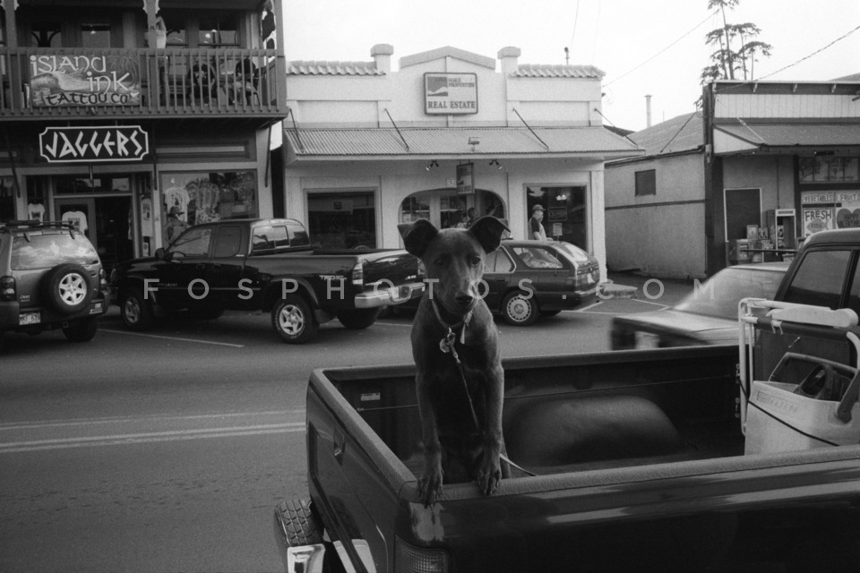 Dog in flatbed truck, Oahu, Hawaii, USA, 2003