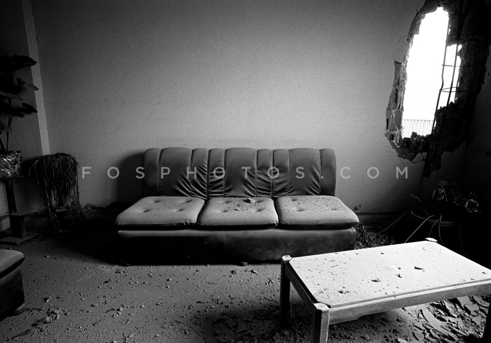 Bombed living room in a house in Bent Ja…