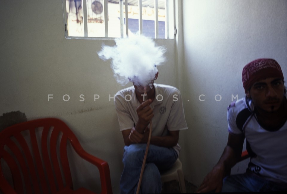 Palestinian refugees smoking arghile in …
