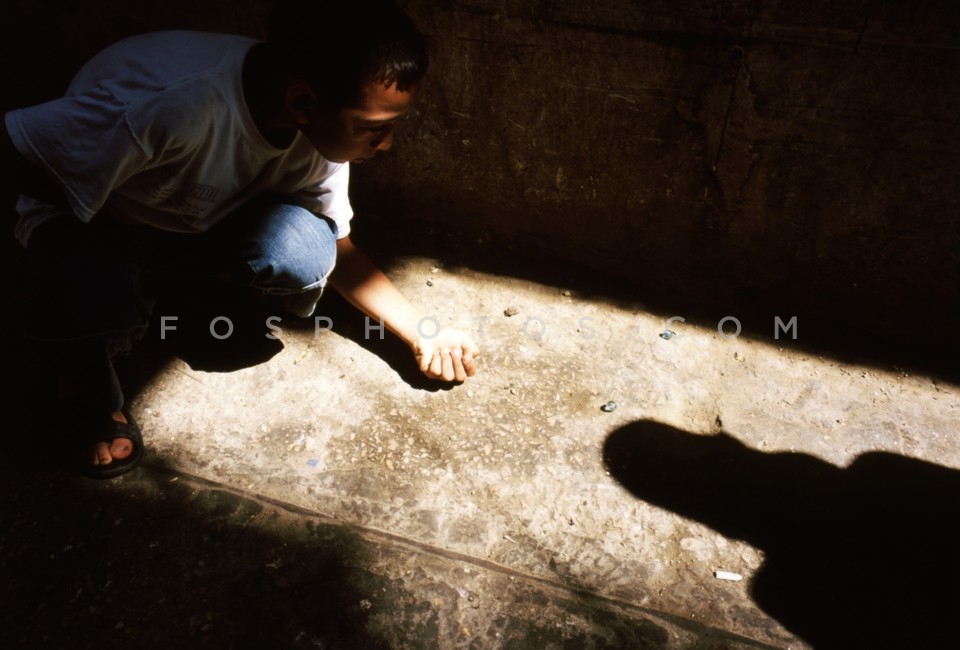 Boy from Palestine playing marbles in Sh…