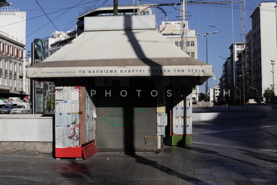Shut kiosk in Omonoia Square, Athens, Gr…