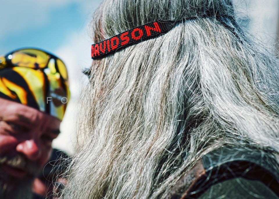 A biker with a Harley Davidson ribbon in…