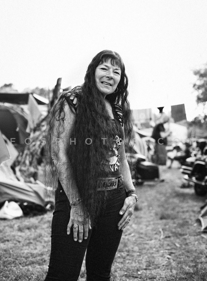Female biker, fan of Harley-Davidson, at…