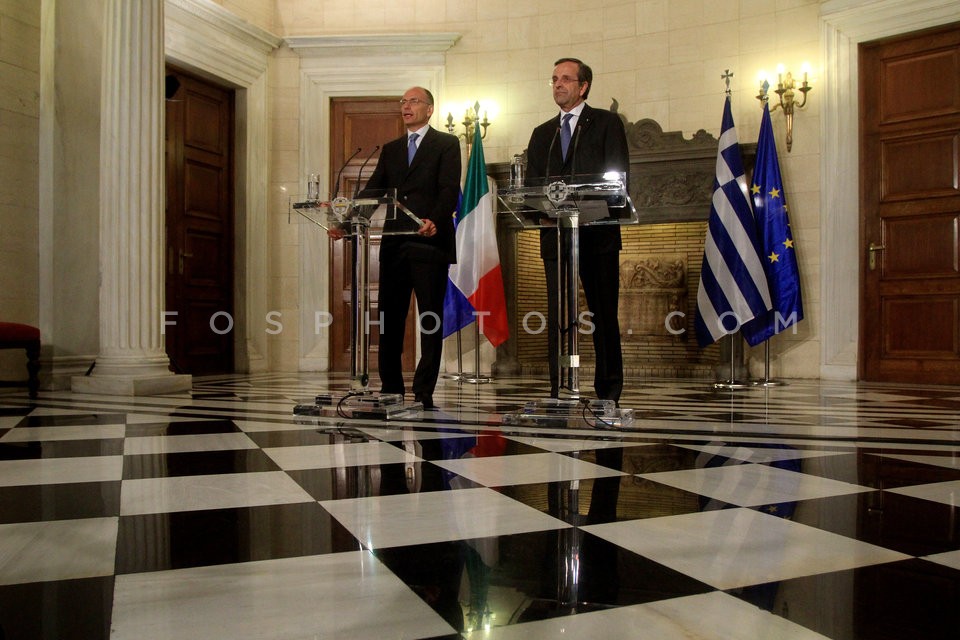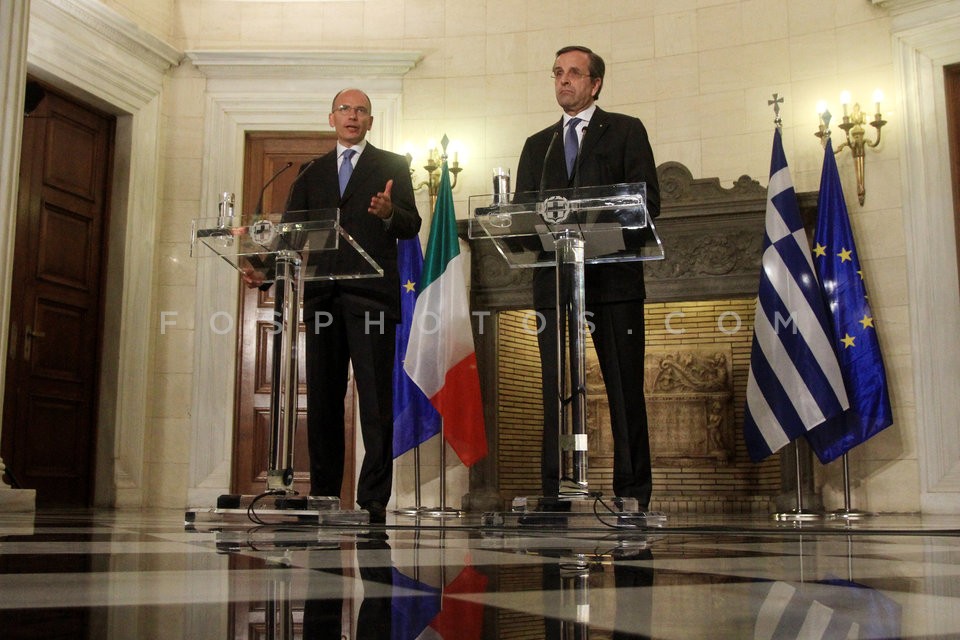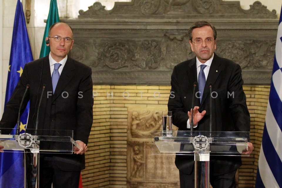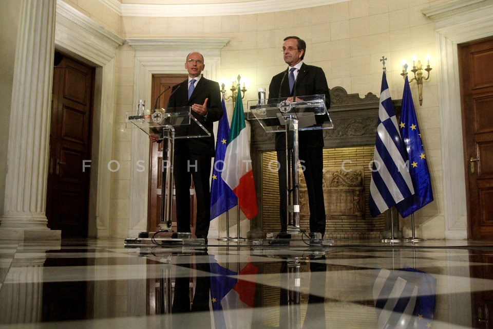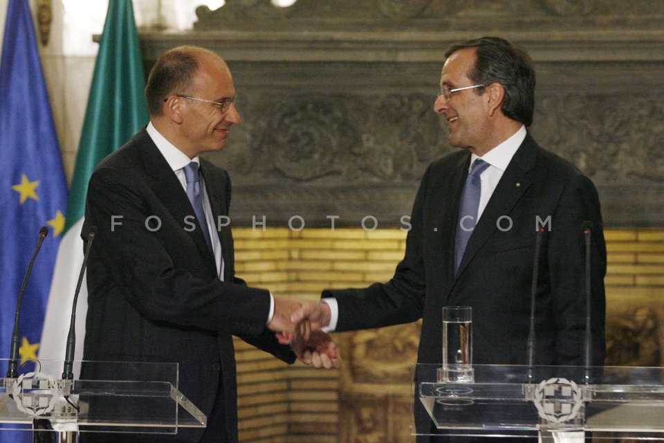 Greek Prime Minister Antonis Samaras (R…