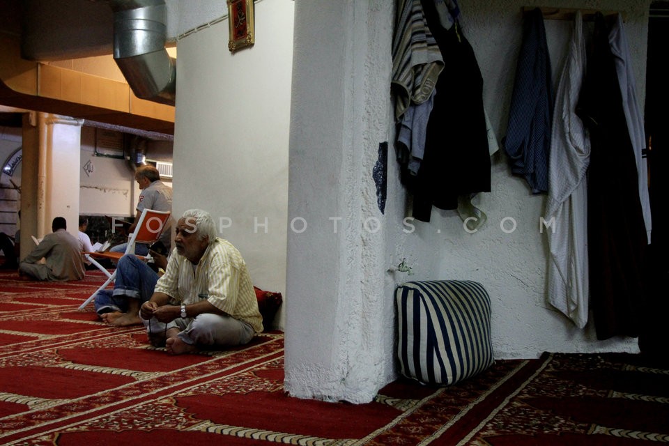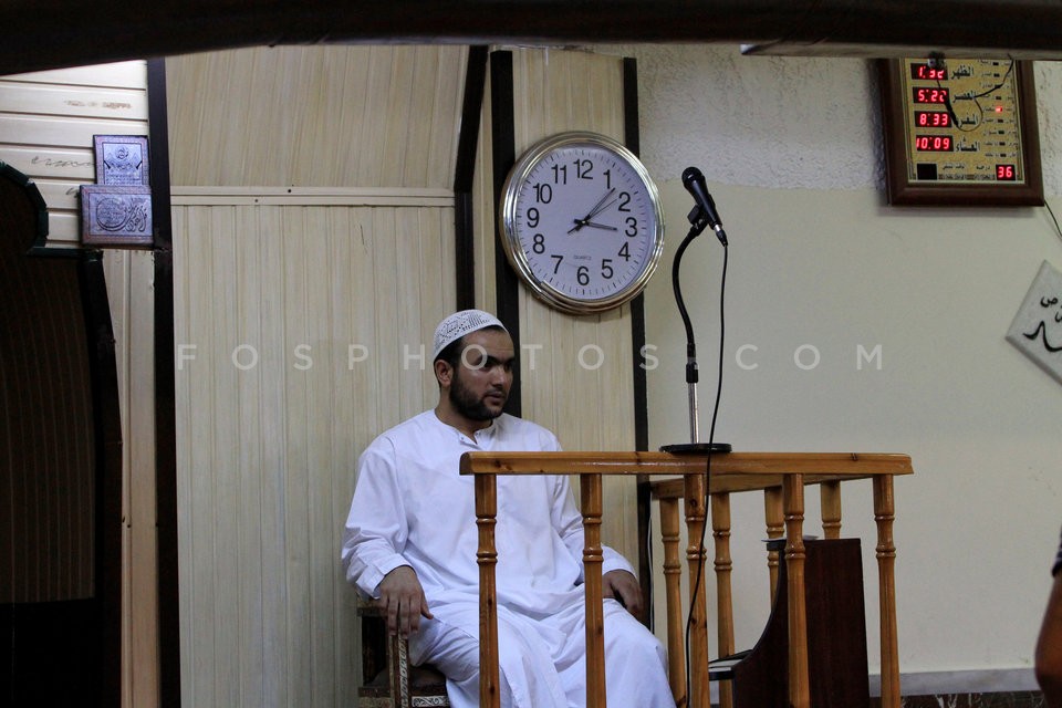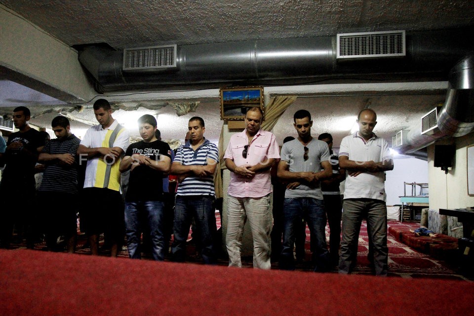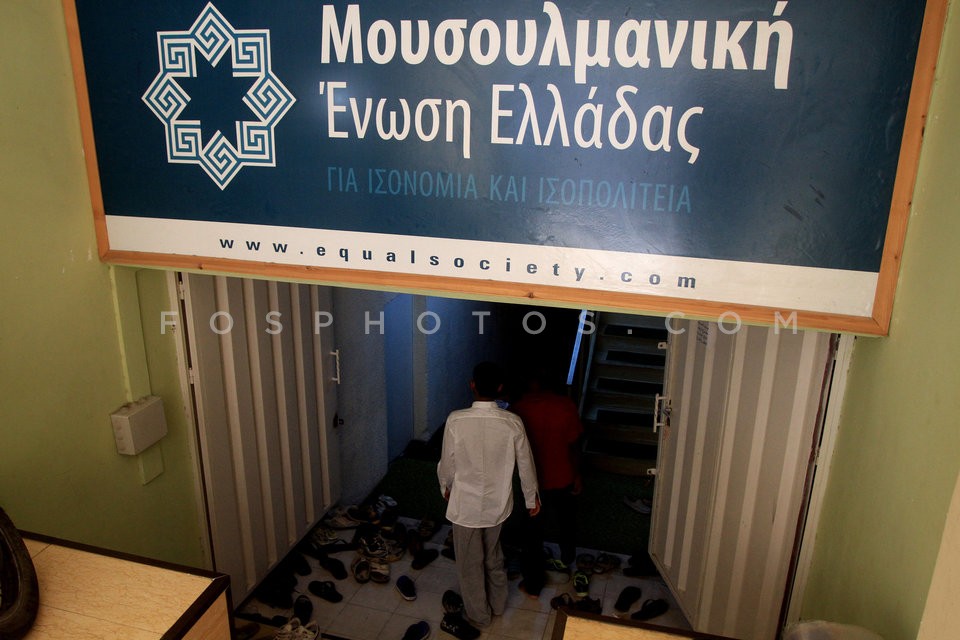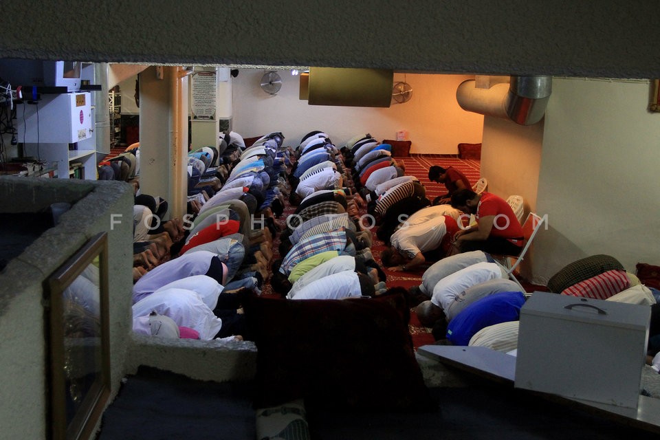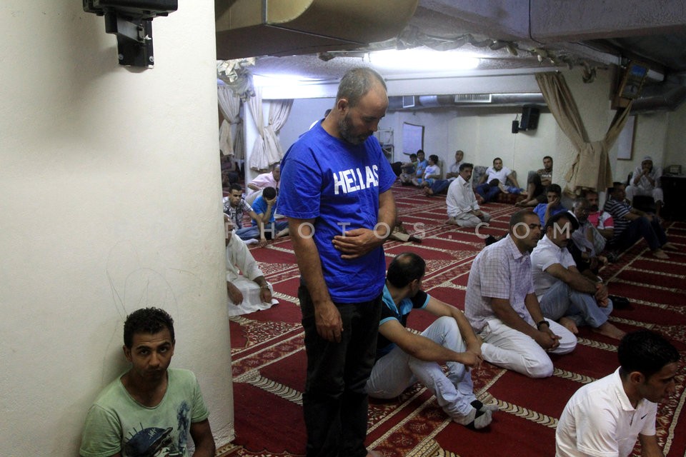 Muslims praying in a makeshift mosque in…