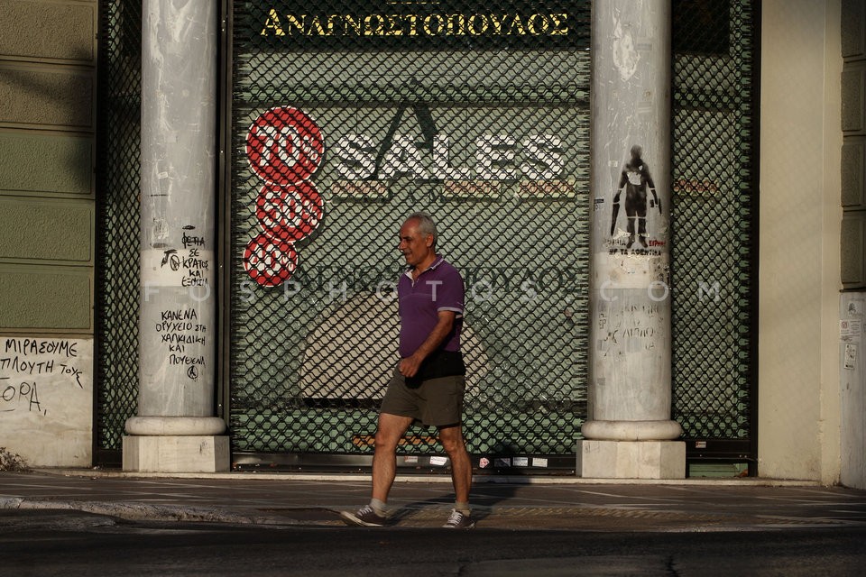 A worker walks in front of a closed shop…