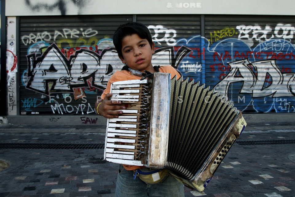 A boy playing music asking for money fro…