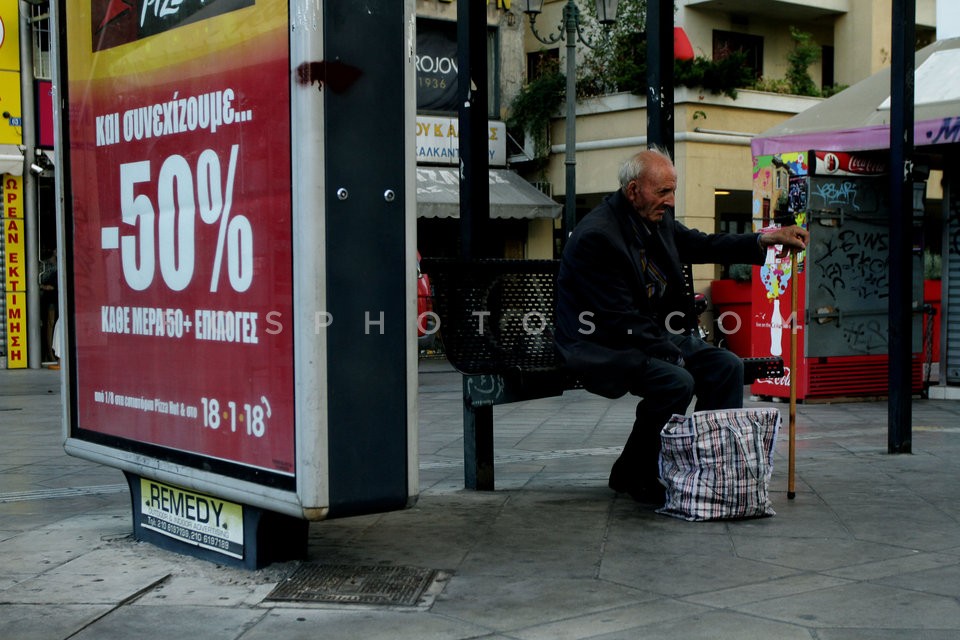 Elderly man in bus stop, in downtown Ath…