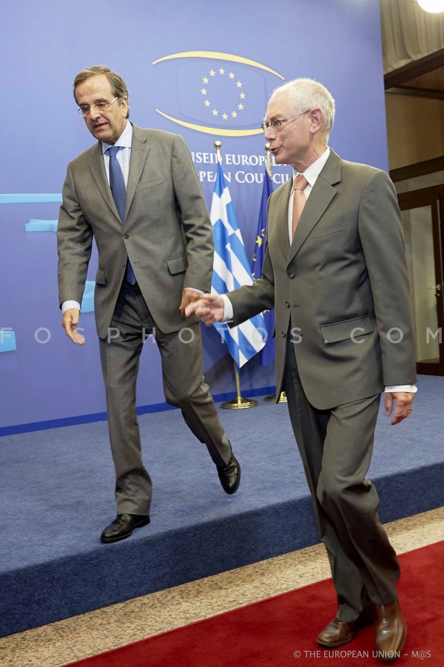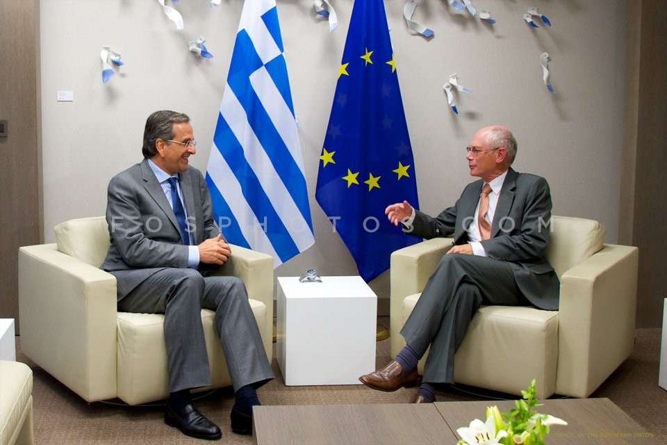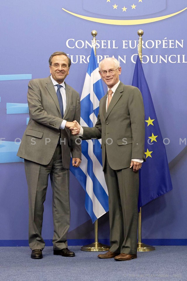 Greek Prime Minister Antonis Samaras met…