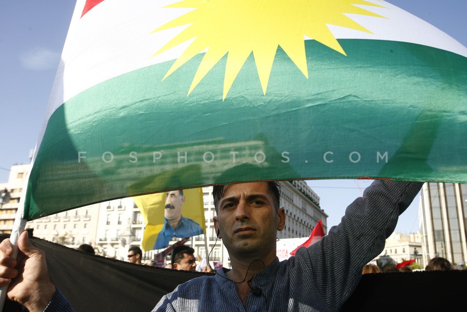 Kurdish immigrants, during protest rally…