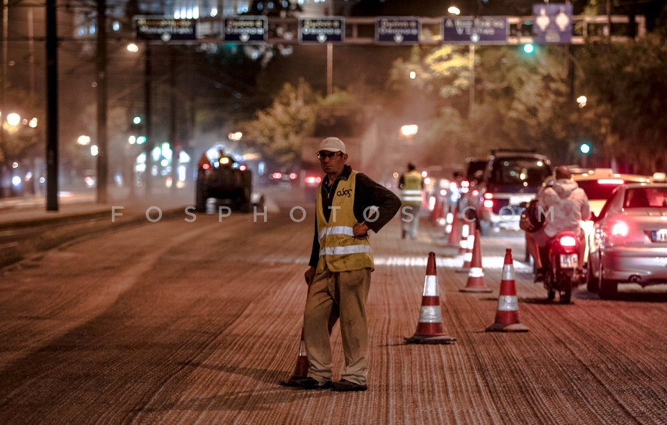 Excavation of the road during the recons…