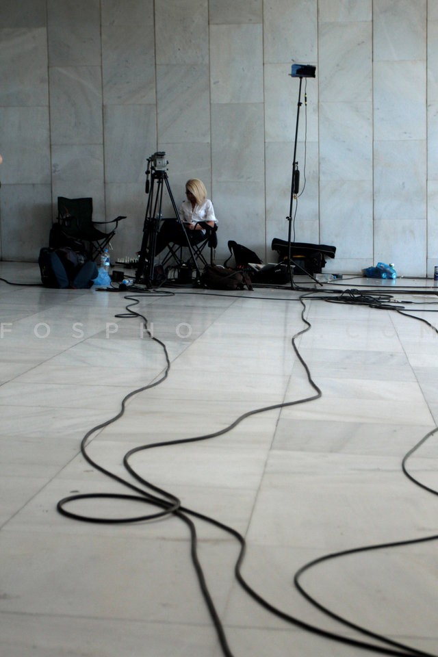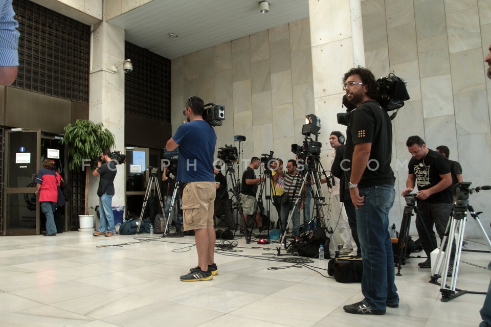 Members of the press outside the Athens…