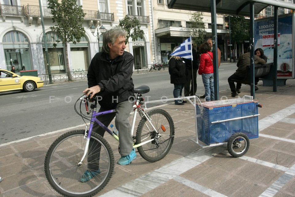 Cyclist in central Athens on March 02, 2013