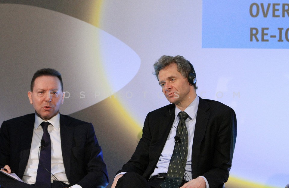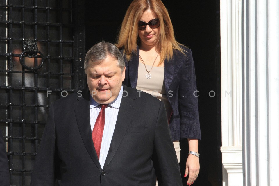 Finance minister Yannis Stournaras (L) a…
