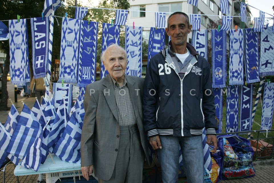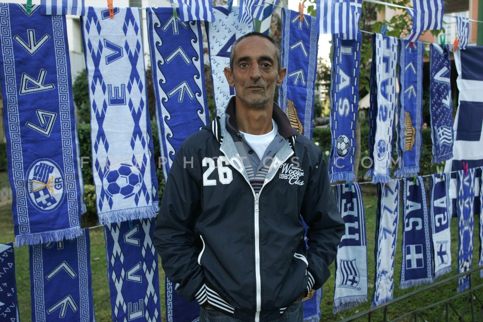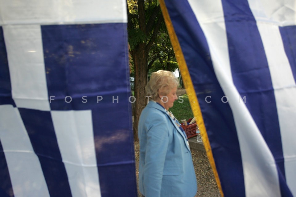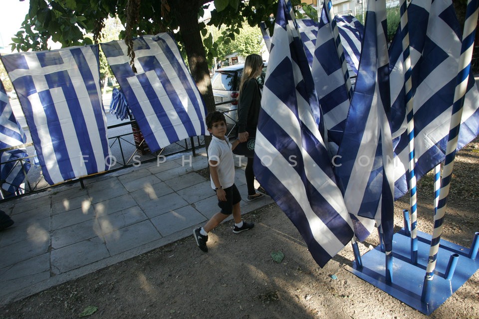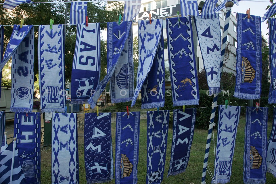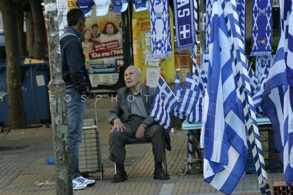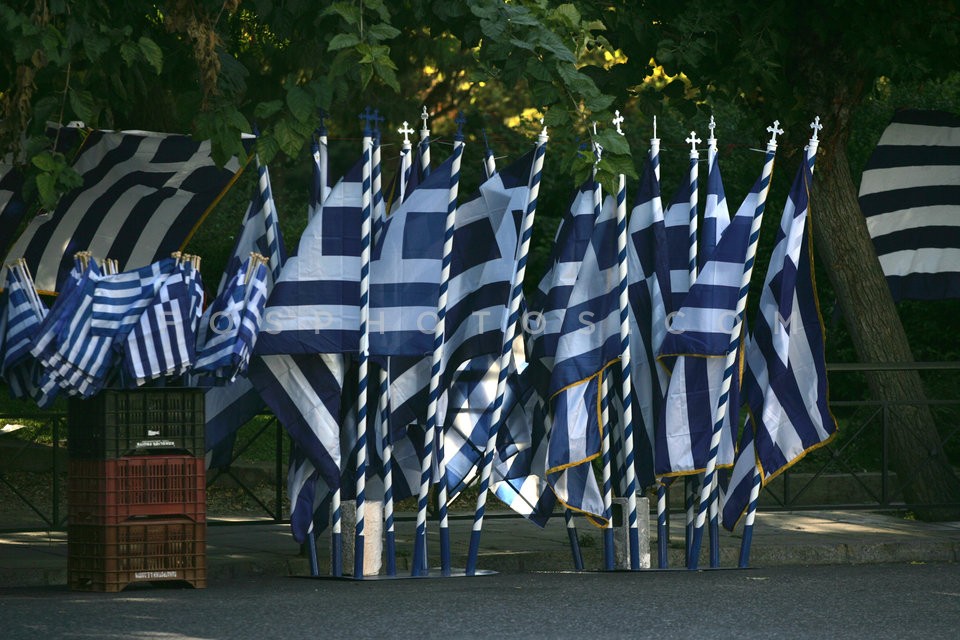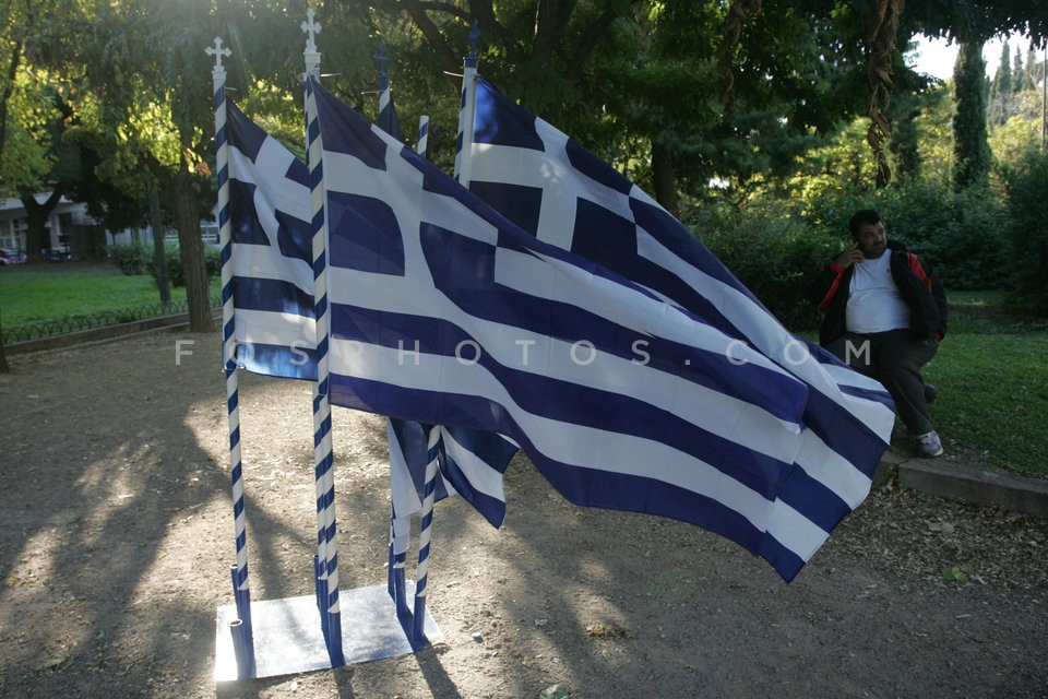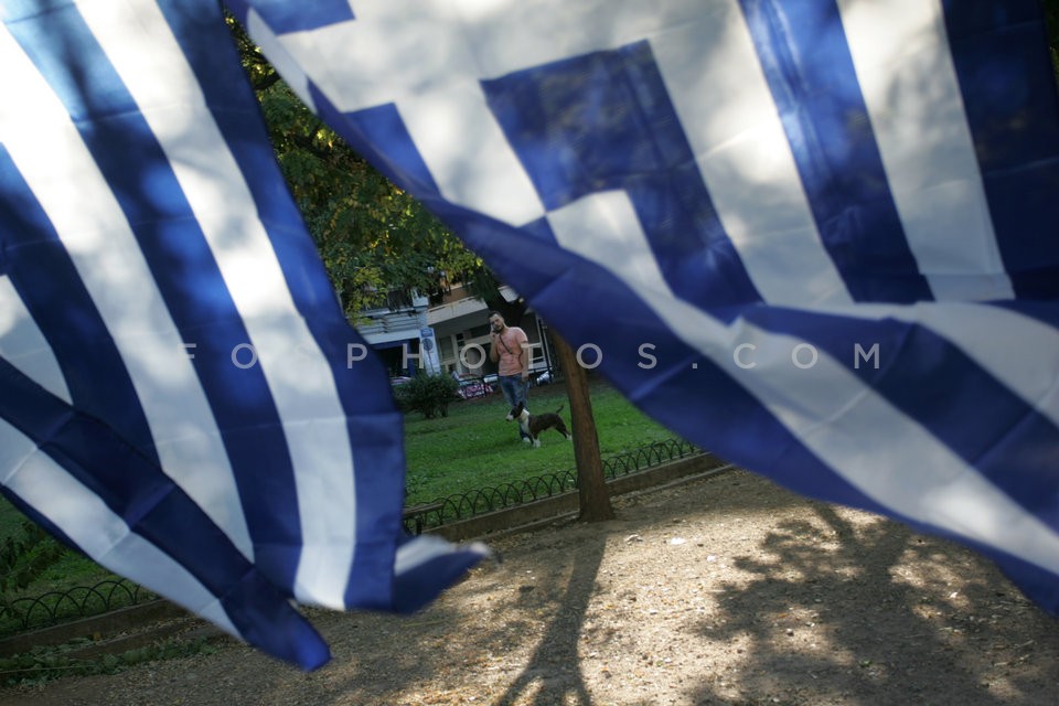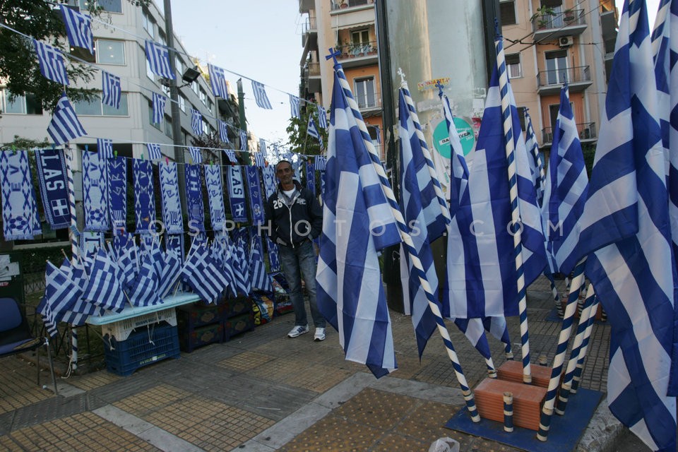 Street vendors selling Greek flags for t…