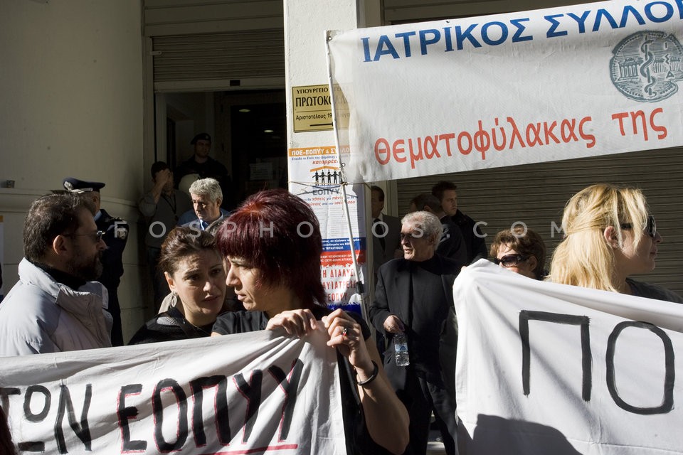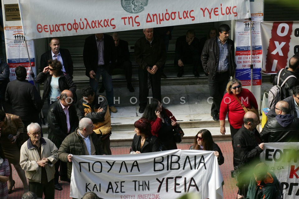 Employees in the health sector protest o…