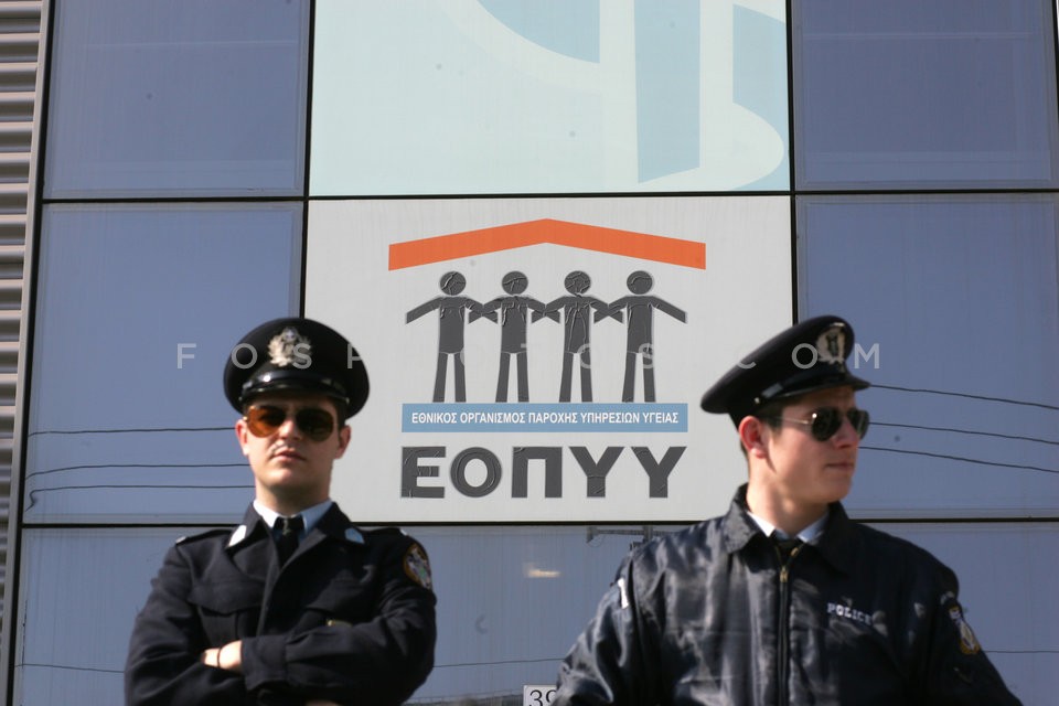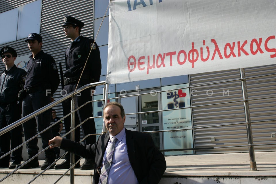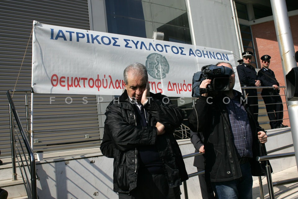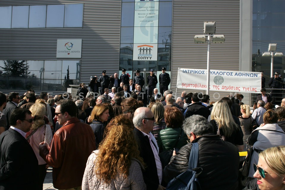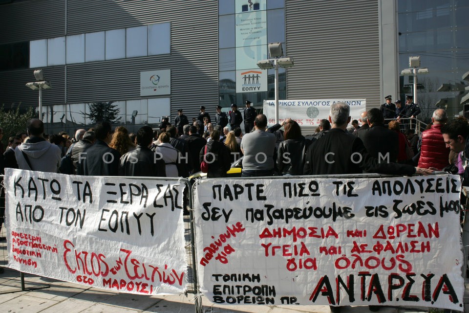 Health employees protest outside the hea…
