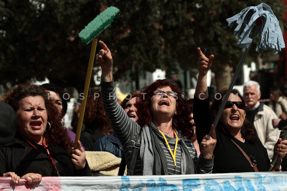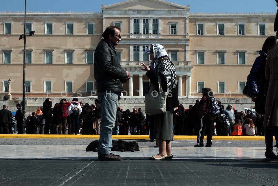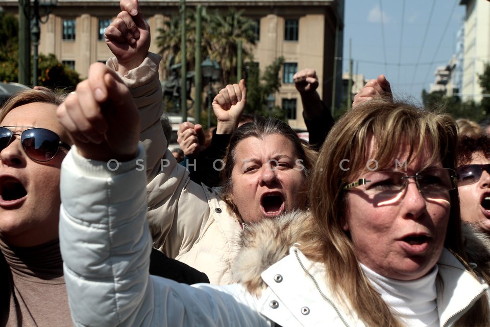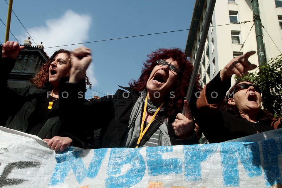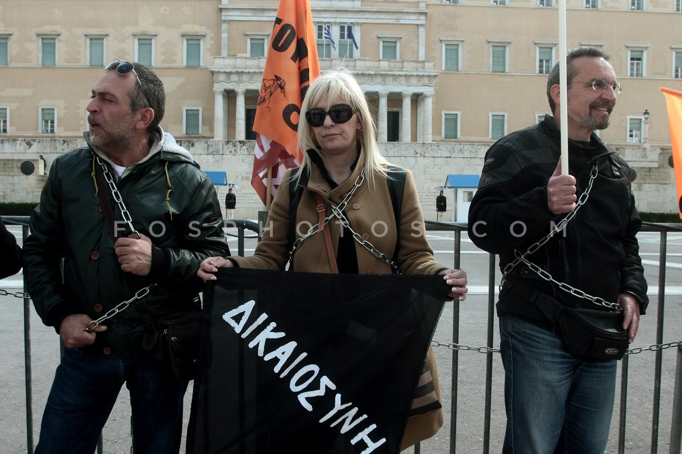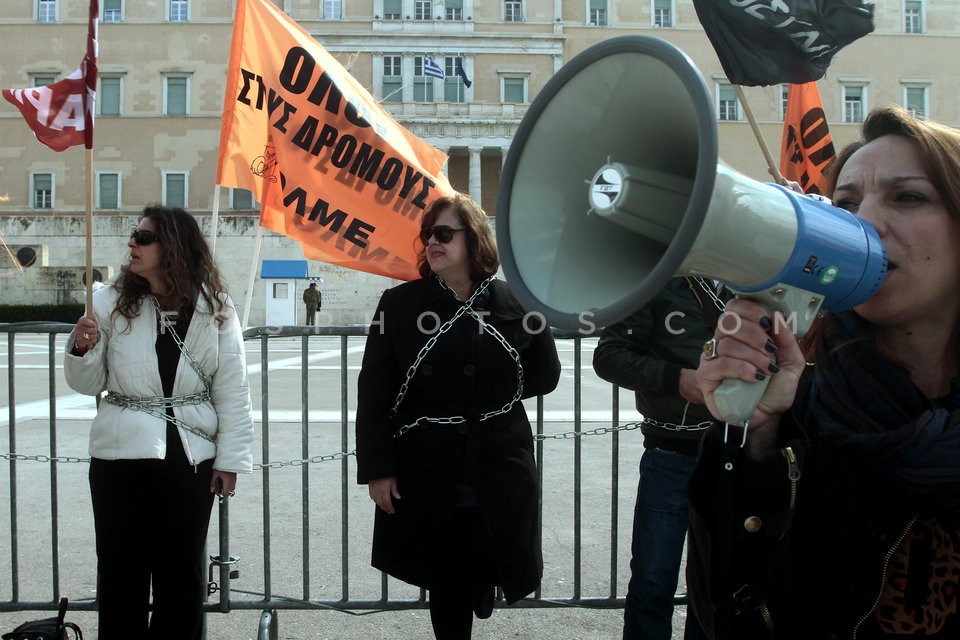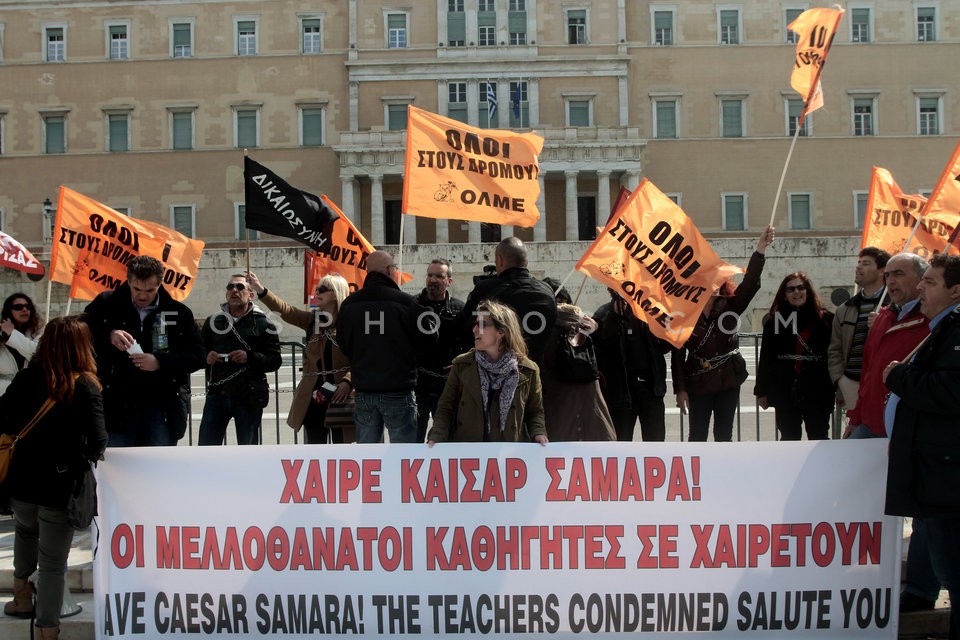 Teachers chained to iron railings outsid…