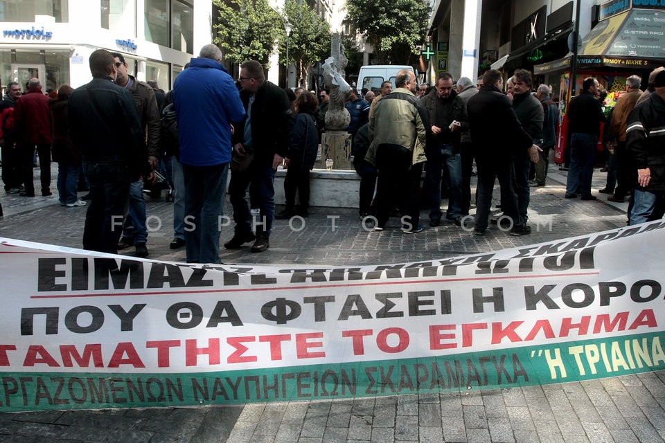 Shipyard workers in protest outside the …