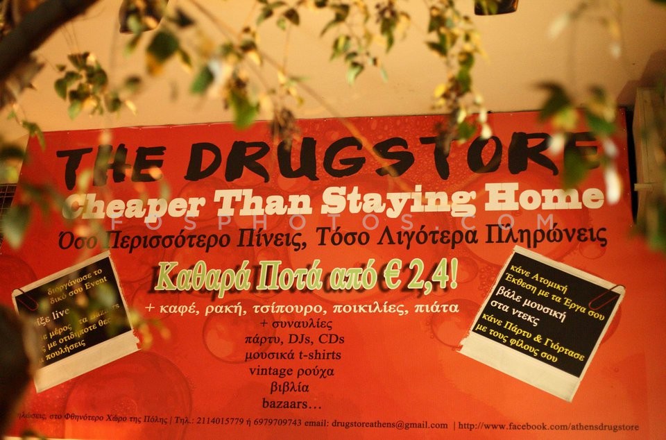 Drugstore bar at Exarhia, Athens February 2014