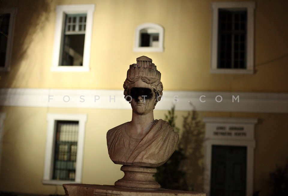 Abused statue "Athens carrying on her he…
