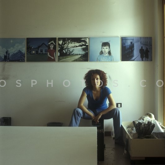 Painter Mandalina Psoma at her workshop,…