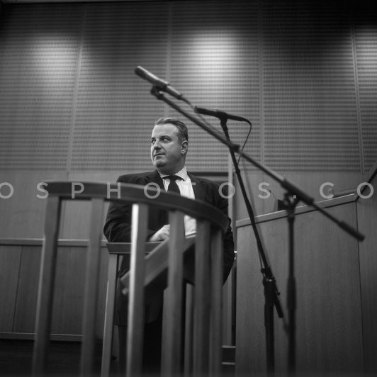 Lawyer Sakis Kehagioglou in a courtroom,…