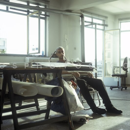 Artist Ilias Papailiakis at his workshop…