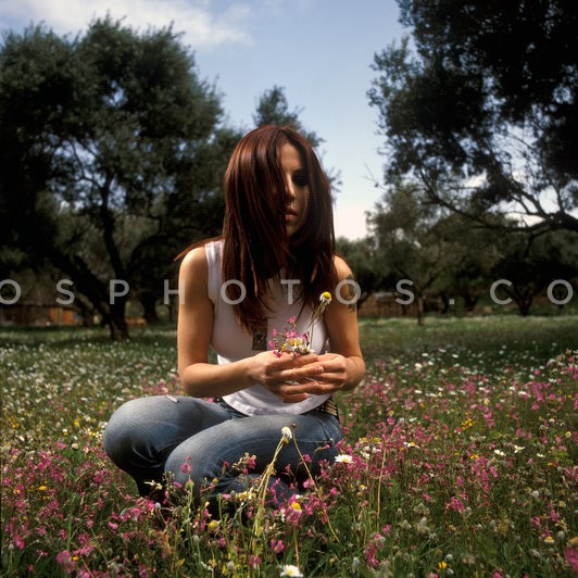 Pop singer Evridiki in a field, April 2003