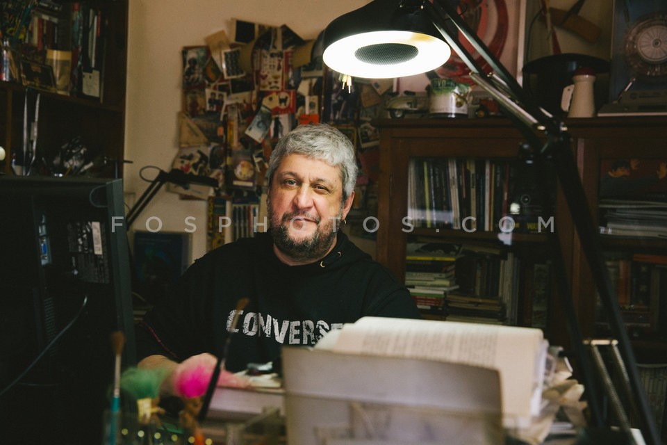 Comic artist, Petros Zervos, Athens, March 2014