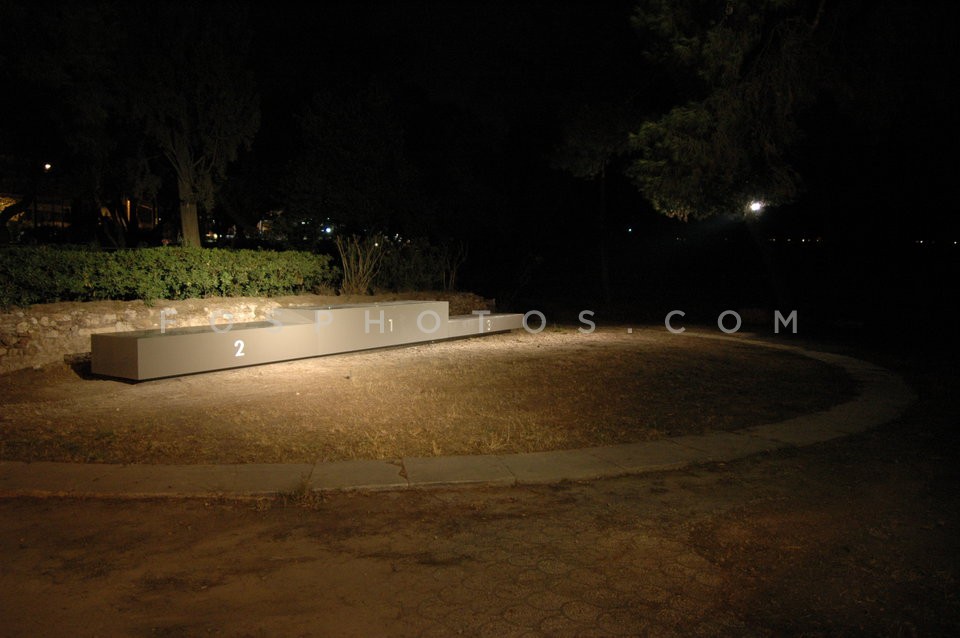 Medals podium installed in small square …