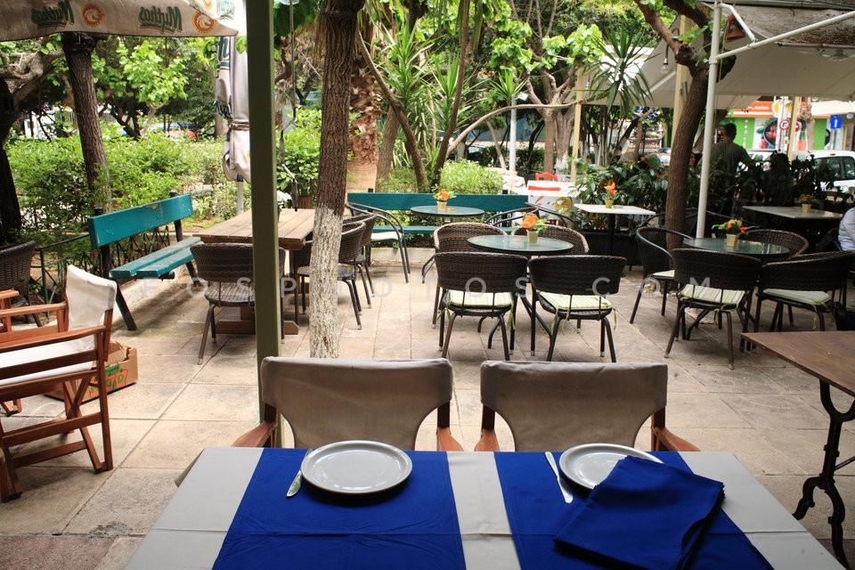 Coffee shop tables at Proskopon square i…