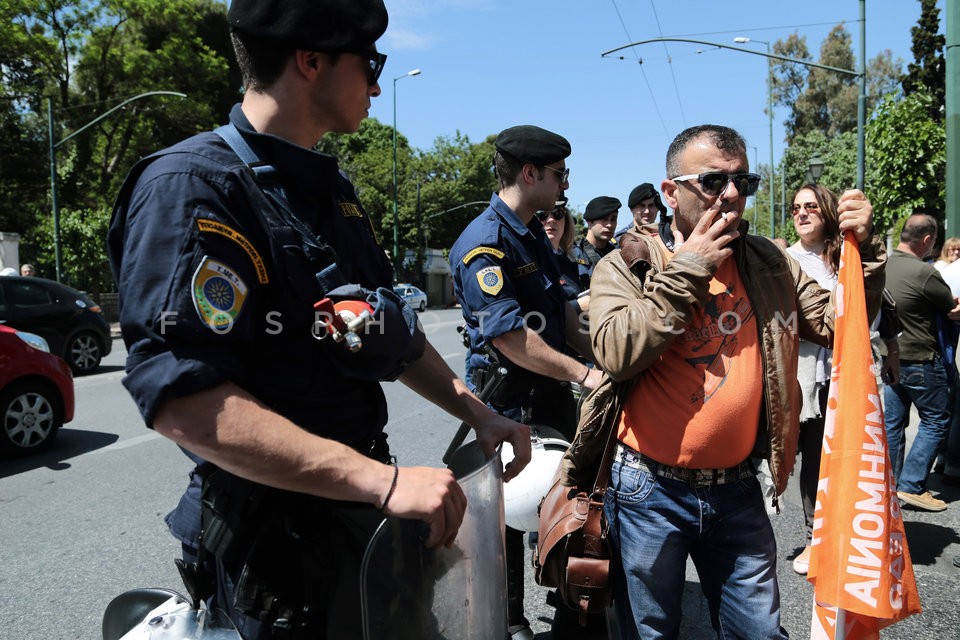 Workers protest outside the Ministry of …